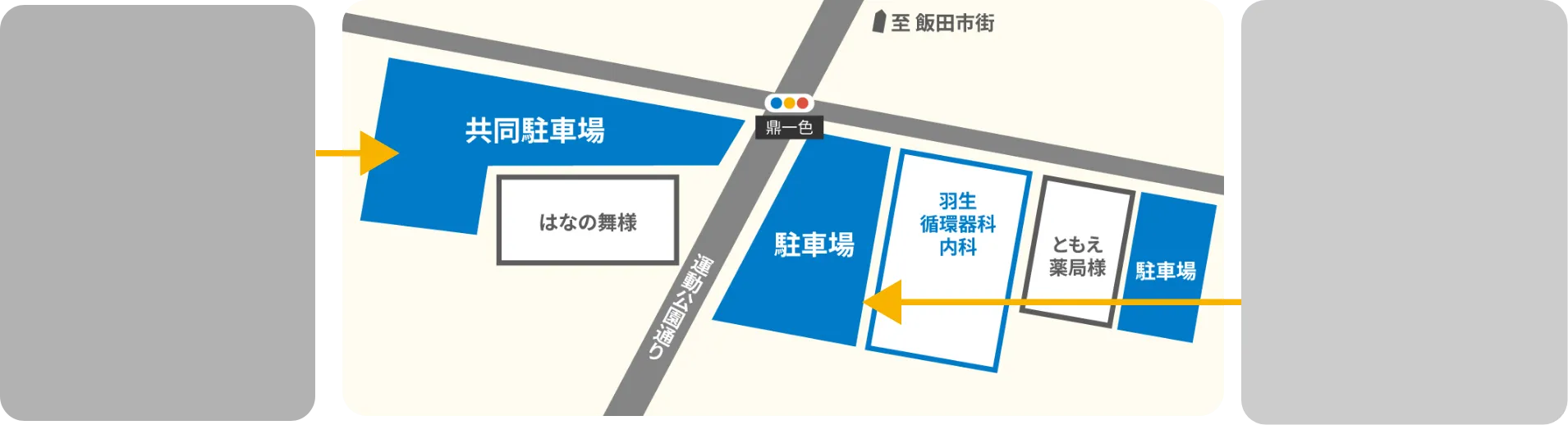「診療所駐車場10台」、隣接の「ともえ薬局様駐車場3台」、「共同駐車場(はなの舞様の横)約20台」がございます。